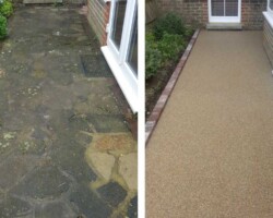 Resin Bond is a relative new concept in driveways and it is rapidly becoming very popular in the industry. Resin bonded driveways is layed with small stones fixed with high tech resin to form a firm surface. It created many small games between the stones to allow water to drain in to ground easily.Resin bonded driveways benfit from low maintenance, strong surfaces, durable, environmentally friendly, choice of colours and it looks very attractive.